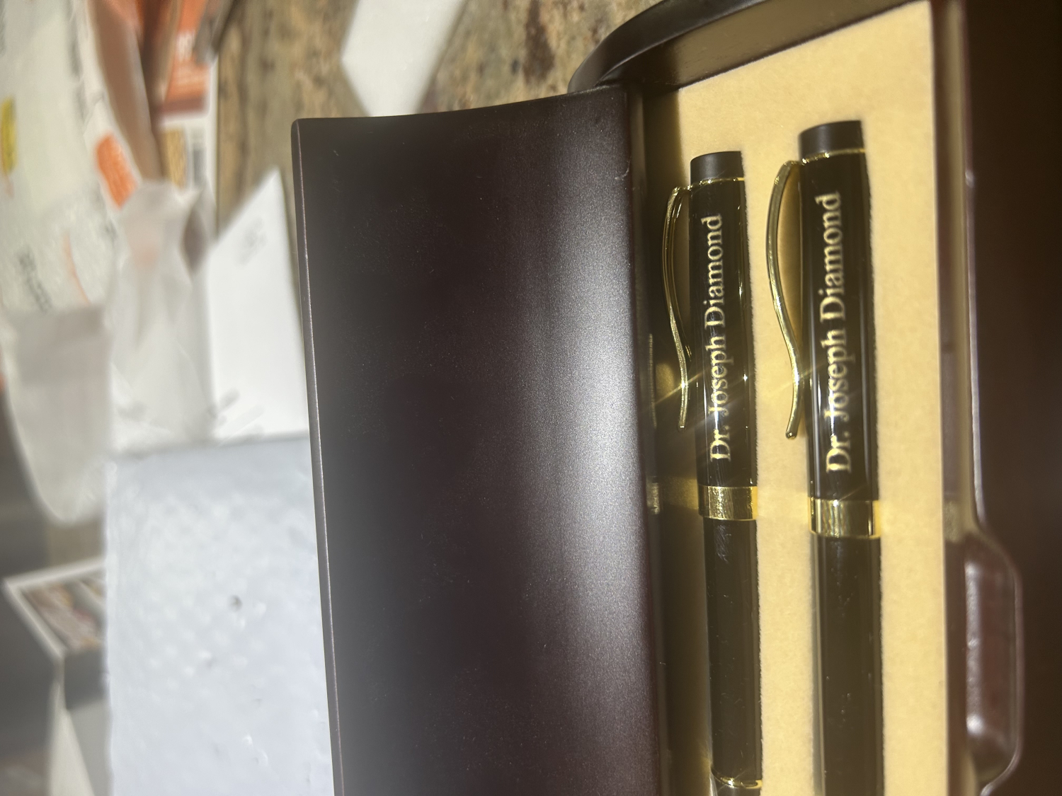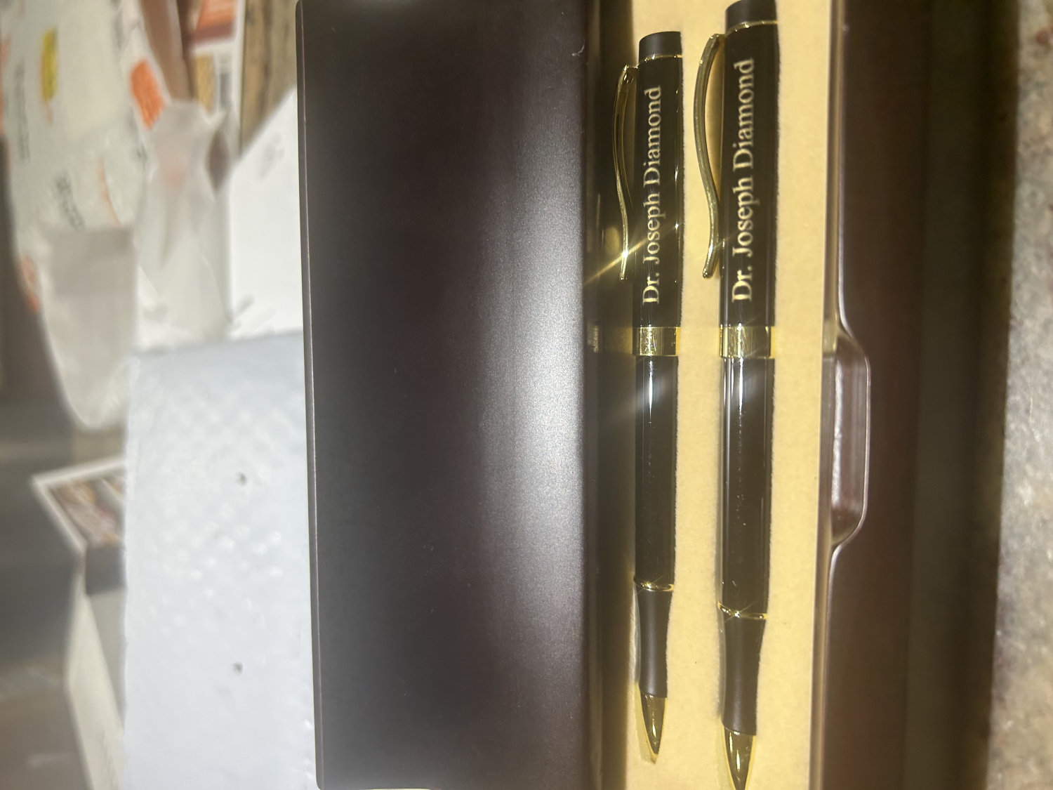 The pen set with his name engraved was a perfect gift,