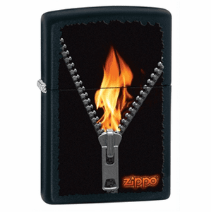 Flaming Zipper Black Mattte Zippo Lighter - Discontinued