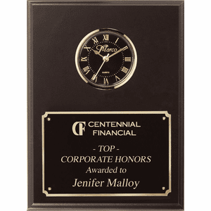 Personalized Black Matte Finish Recognition Plaque with Inlaid Clock with Black Dial