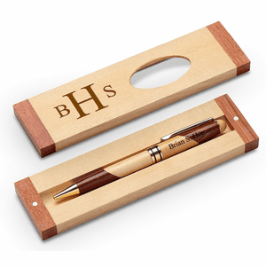 Roman Monogram Theme Personalized Maple & Rosewood Engraved Pen and Box