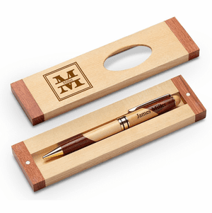 Split Monogram Theme Personalized Maple & Rosewood Engraved Pen and Box