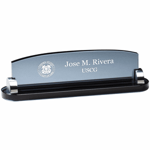 Coast Guard Theme Personalized Smoked Glass Desktop Name Plate