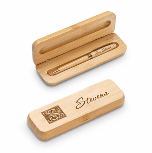 Last Name Monogram Theme Laser Engrave Bamboo Pen and Box Set