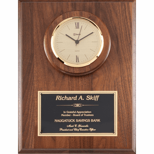 Personalized Genuine Walnut Recognition Plaque with Inlaid Clock with Cream Dial