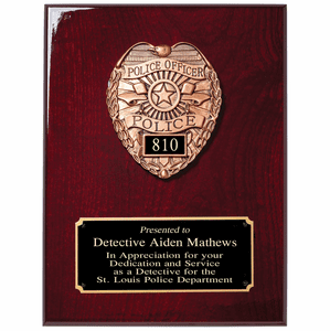 Personalized Police Theme Rosewood Plaque with Engraving Plate