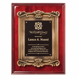Personalized Rosewood Plaque with Antique Bronze Floral Casting & Engraving Plate