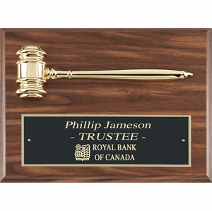 Personalized Walnut Finish Plaque with Attached Gold Gavel