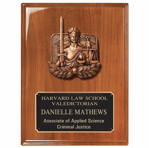 Personalized Blind Lady Justice Theme Walnut Plaque with Engraving Plate